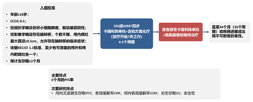 卡瑞利珠单抗是PG医药自主研发的一种人源化IgG4单克隆抗体,其联合铂类双药化疗已在中国获批用于晚期NSCLC患者的一线治疗5,6。2023年,Ⅱ期CAP-BRAIN研究显示了卡瑞利珠单抗联合治疗方案作为晚期非鳞状NSCLC伴脑转移患者一线治疗的潜力7。本项Ⅱ期研究,旨在研究卡瑞利珠单抗联合脑放疗和铂类双药化疗在未经治疗的晚期非鳞状和鳞状NSCLC伴脑转移患者中的疗效和安全性。